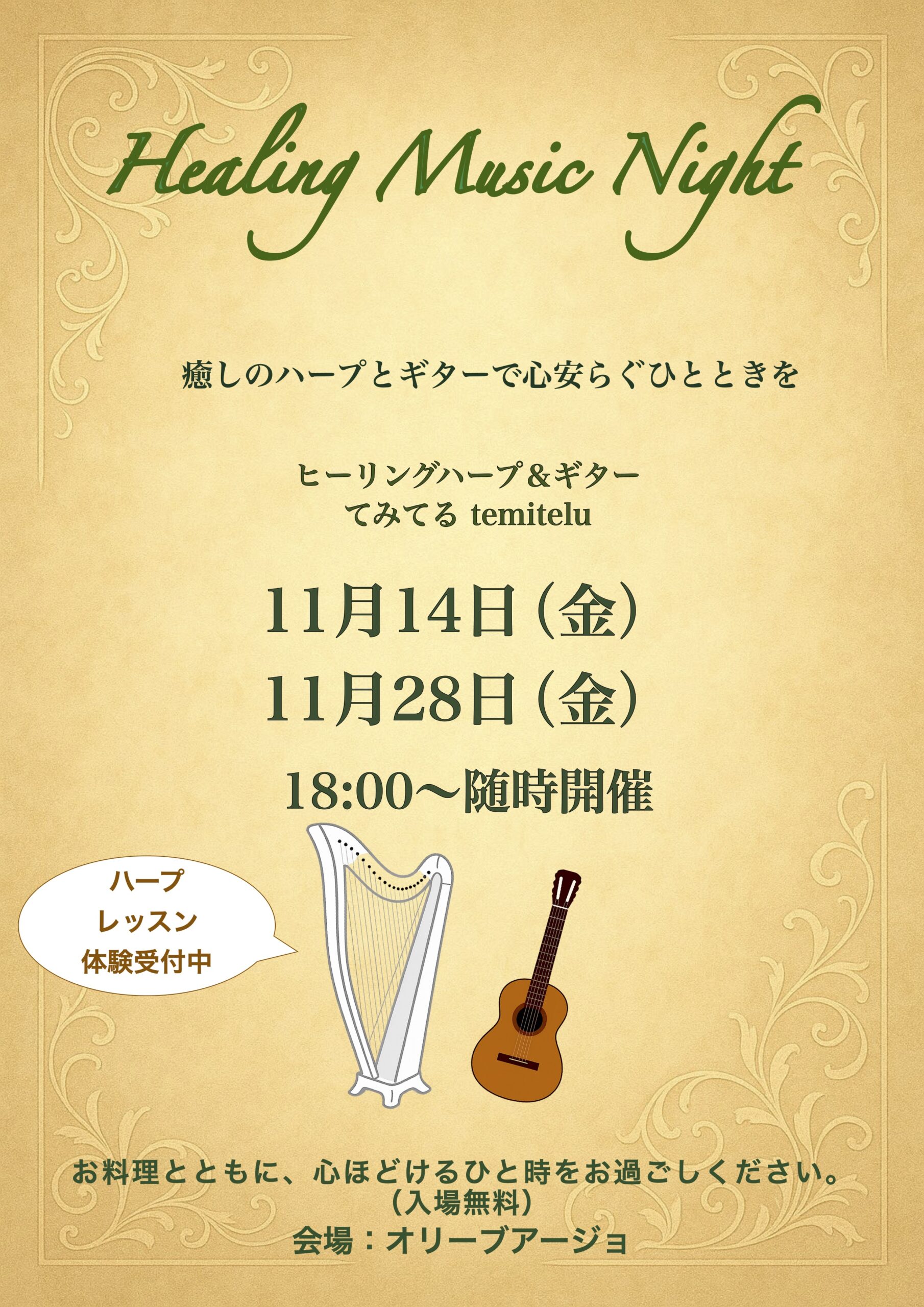 11月14日(金)オリーブアージョ(福岡市中央区) 18:00〜随時