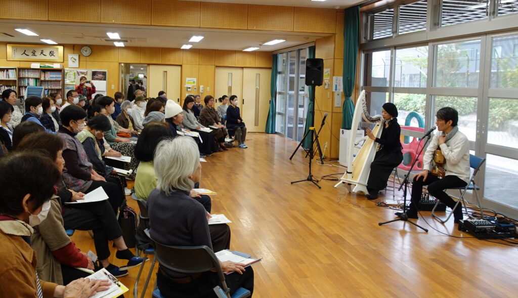 1/9 野多目公民館(福岡市)|ハープ体験会